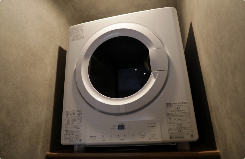 家具や家電はあらかじめすべて備え付けられており、快適に過ごせます。設備には、ガス衣類乾燥機のリンナイ(乾太くん)と6畳用エアコン(MITSUBISHI 霧ヶ峰)を標準装備。手間なく、すぐに使える完成された住空間として、セカンドハウスや小規模宿泊施設、ワークスペースなど幅広い用途に対応します。