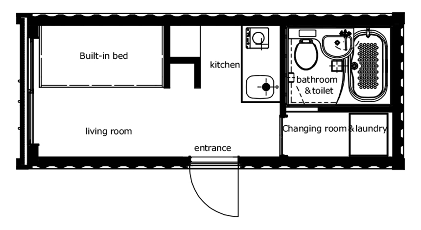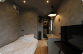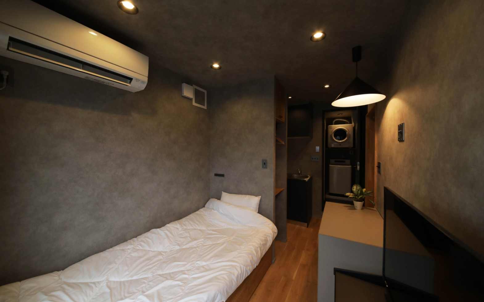 限られたスペースの中に、ベッドルーム・キッチン・脱衣所・3点ユニットバスを無理なく配置。生活に必要な機能がすべて揃った、居心地のよい一室です。
