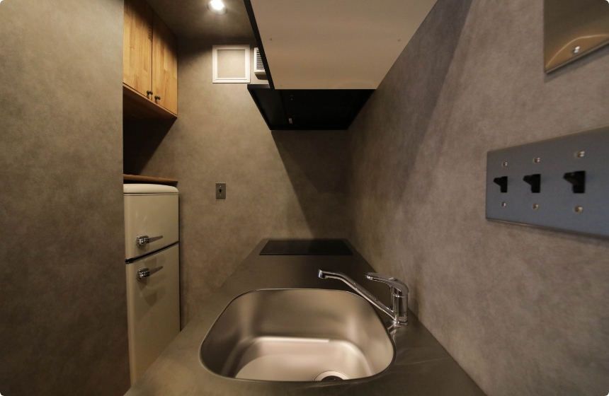 家具や家電はあらかじめすべて備え付けられており、快適に過ごせます。設備には、ガス衣類乾燥機のリンナイ(乾太くん)と6畳用エアコン(MITSUBISHI 霧ヶ峰)を標準装備。手間なく、すぐに使える完成された住空間として、セカンドハウスや小規模宿泊施設、ワークスペースなど幅広い用途に対応します。